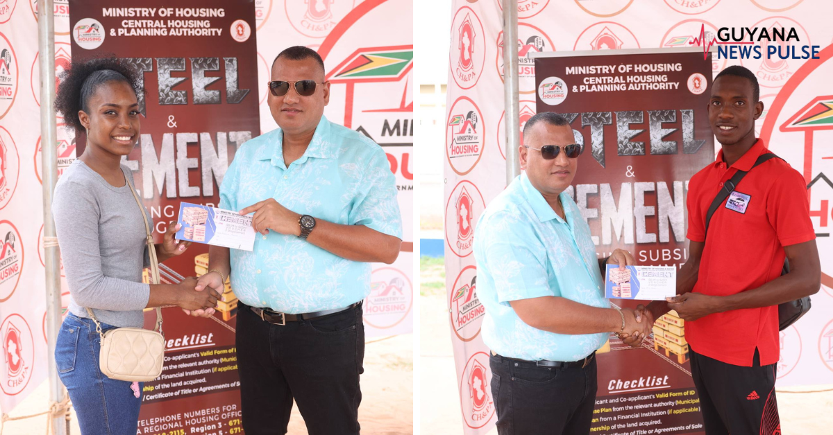 The vouchers were distributed early Friday by Minister of Housing Collin Croal, who was joined by Regional Housing Officer Teshana McDonald and staff of the Central Housing and Planning Authority (CH&PA).