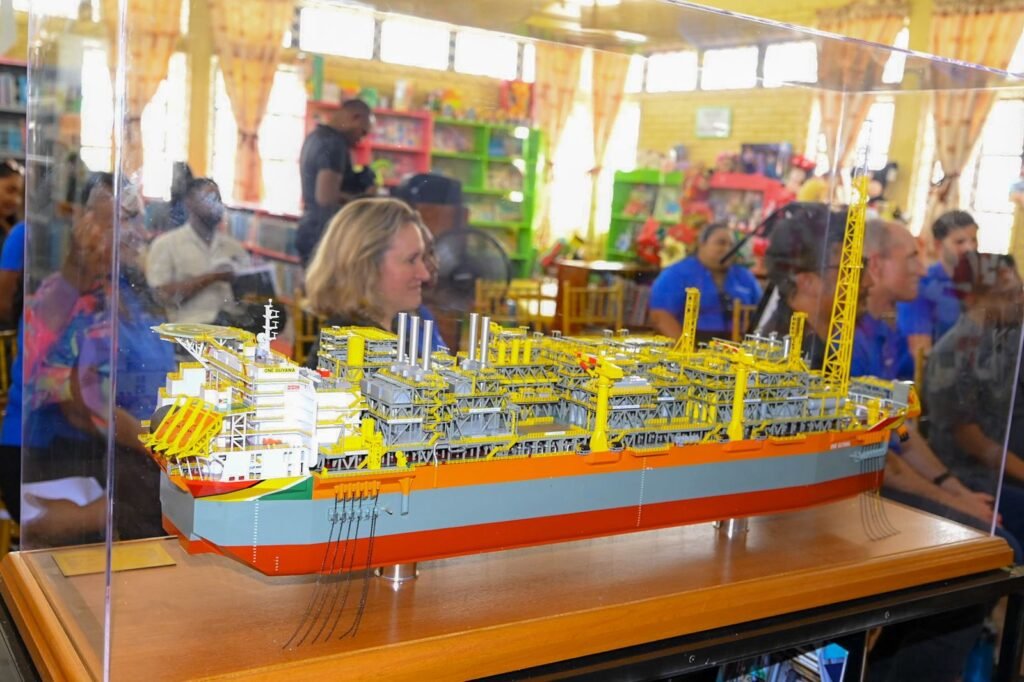 The new corner features a replica of the One Guyana FPSO, along with educational materials designed to make complex national developments more accessible within a public learning space.
