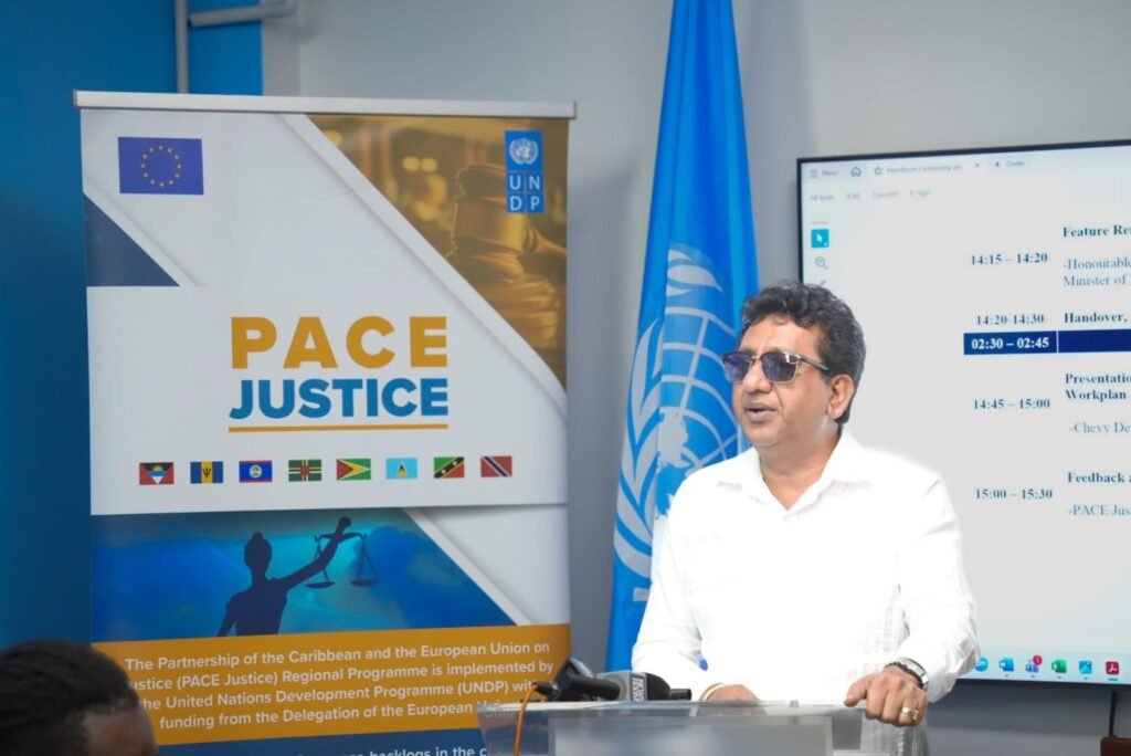 Nandlall delivered feature remarks at a handing-over ceremony at UN House, Duke Street, under the United Nations Development Programme (UNDP)-funded Partnership of the Caribbean and the European Union on Justice (PACE Justice) Programme.